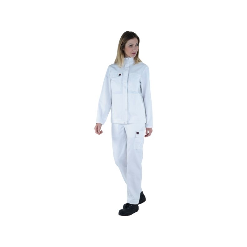 60% coton, 40% polyester - Sergé, 315 g/m². Col montant fermée par zip sous patte, manches montées, poignets réglables. 2 poches poitrine, 2 poches basses, ceinture réglable. Coloris : bleu marine, bleu bugatti, bleu azur, bleu métal, blanc, noir, gris, gris charcoal, vert bouteille, rouge Taille : 0 à 6 Norme : CE Cat II - EN 15797