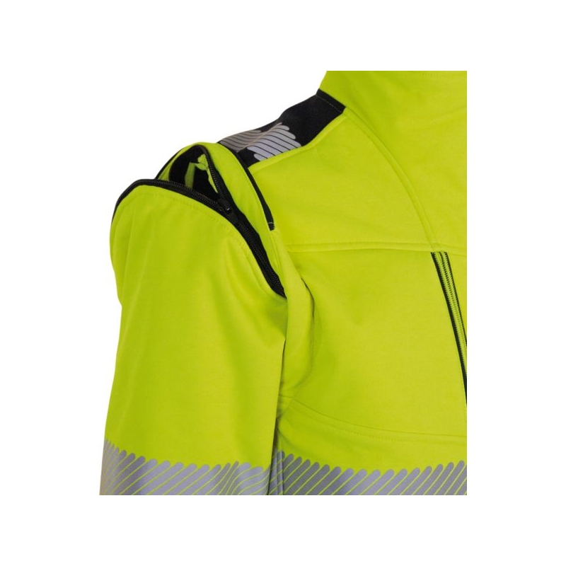Extérieur : laminé 3 couches : polyester/strech, 400 g/m². Intérieur : tissu polaire intérieur +/- 220 g/m², 100% polyester traité antiboulochage. Tissu Onde-brella = Protection anti-ondes. Bandes rétroréfléchissantes segmentées : 2 brassards, 2 ceintures, 2 épaules (70 cycles de lavage à 60 °C). Col cheminée, manches amovibles par glissière, fermeture à glissière sur le devant. 2 poches basses fermées par glissières, 1 poche poitrine côté droit fermée par glissière, 1 poche portefeuille intérieure fermée par glissière et doublée en tissu anti-ondes. Dos long protège reins. Entretien : lavage ménager Système Fit&Zip permettant d’adapter cette veste dans les parkas hivi Everest réf. 114607 ou Annapurna réf. 17627. Coloris : jaune fluo/marine, orange fluo/marine Taille : S à 3XL Norme : CE Cat II - EN ISO 20471 (3) - EN 14058 (2.3.X.X.X)