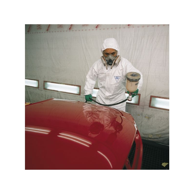 100% polyéthylène - non tissé Tyvek® 500, 41 g/m². Traitement antistatique sur les 2 faces. Barrière contre les particules > 1µ, contre les liquides chimiques, résistance à la pression liquide 120 cm. Coutures externes cousues. Capuche en 3 parties pour un ajustement optimal (particulièrement adaptée au port du masque). Fermeture éclair avec blocage automatique et rabat en Tyvek®. Taille élastique collé, élastique aux poignets, à la capuche et aux chevilles. Application : atelier de carrosserie, décontamination et dépollution, industries pharmaceutiques, agroalimentaires et chimiques Coloris : blanc Taille : 1 à 6 Norme : CE Cat III - EN 13982-1 type 5B - EN 13034 type 6B - EN 1149-5 - EN 1073-2 - EN 14126
