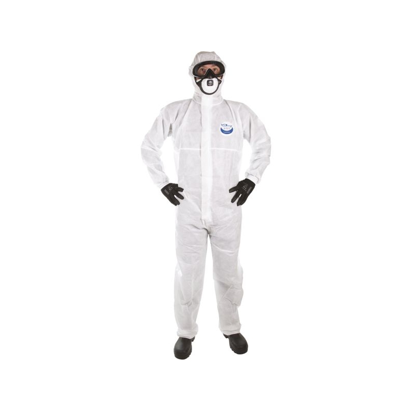 100% polypropylène - non tissé SMS offrant une respirabilité et un confort optimum. Coutures surjetées 4 fils pour une résistance mécanique soutenue. Traitement antistatique. Coutures étanchées. Élastiques à la taille et aux chevilles pour un meilleur ajustement. Poignets jersey. Manche raglan pour plus d’aisance. Capuche 3 pièces. Rabat autocollant + double Zip pour une étanchéité totale. Application : convient pour les projections liquides légères et les particules sèches, nettoyage et maintenance industrielle, travaux de ponçage, métiers du bois et bâtiment, travaux d’isolation et d’entretien, manipulations de fibres de verre et céramiques. Taille : 3 (L) à 5 (2XL) Norme : CE Cat III - EN 13982-1 type 5 - EN 13034 type 6 - EN 1073-2 - EN 1149-5