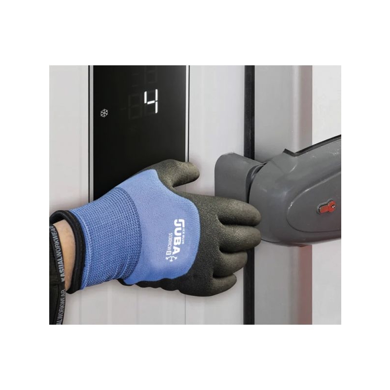 Enduction PVC/HPT (Hydropellent Technology™) 3/4 enduit. Support tricoté nylon, sans couture, jauge 15. Intérieur bouclette. Dos aéré, poignet élastiqué. Contact alimentaire. Environnement : froid, sec, humide, légèrement huileux Applications métiers : travaux en extérieur, chambres froides, agriculture, construction, manipulation des aliments congelés Taille : 6 à 11 Norme : CE Cat II - EN 388 (3231X) - EN 511 (X2X)