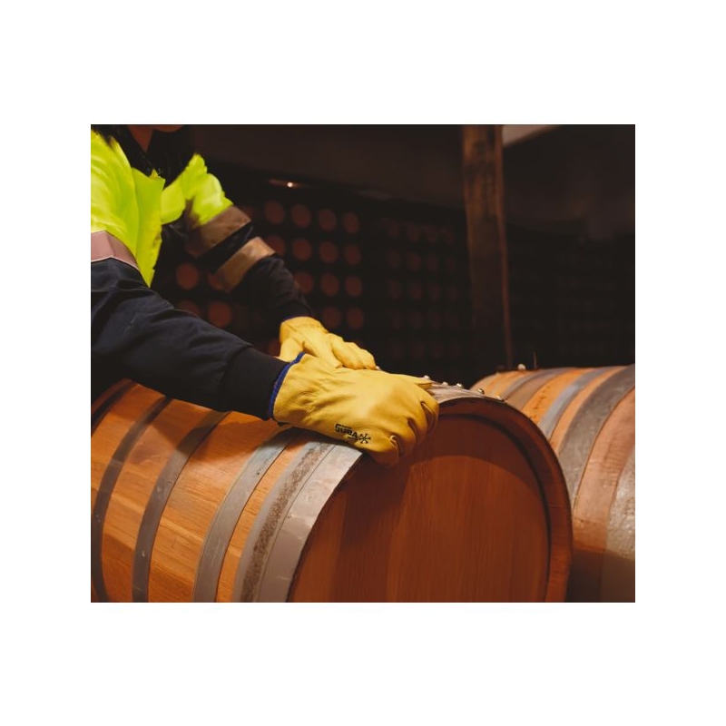 Cuir tout fleur de bovin. Pouce palmé, modèle type gant de maîtrise, montage américain. Doublure coton. Serrage élastique au dos. Environnement : froid (jusqu'à -10 °C), sec, légèrement humide Applications métiers : industrie du froid, transport, cariste, bâtiment, travaux publics, entretien des espaces verts, stations de ski Taille : 8 à 11 Norme : CE Cat II - EN 388 (3122X) - EN 511 (040)