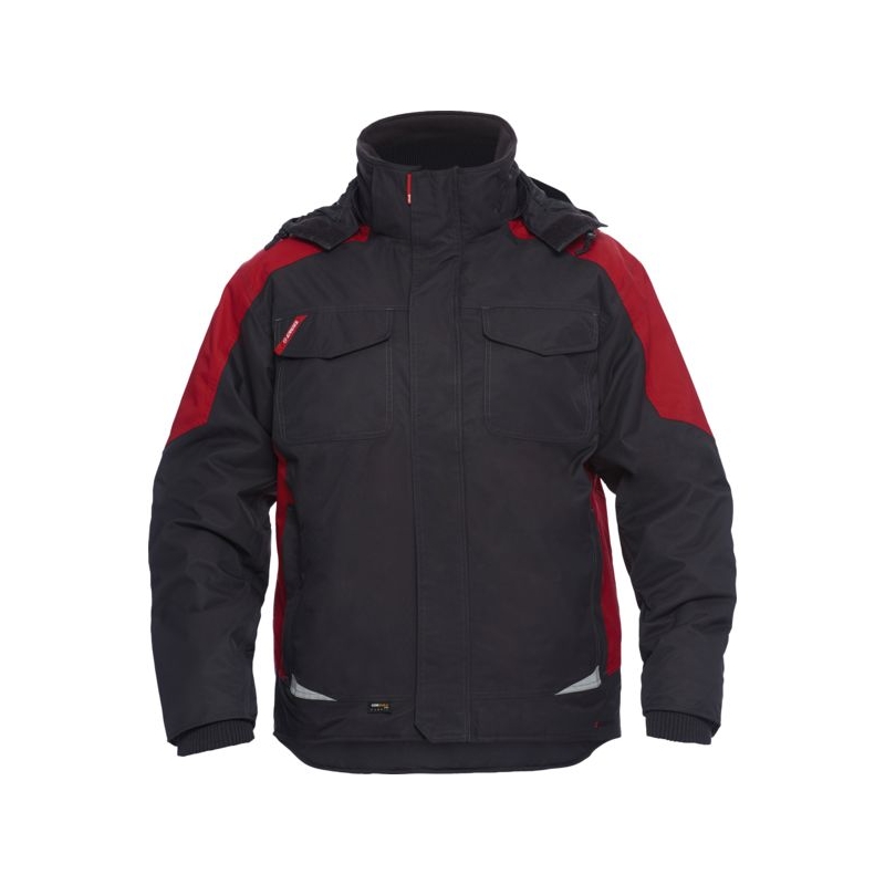Extérieur : 100% polyester avec enduction polyuréthane, 180 g/m². Renforts : 100% nylon Cordura®, 219 g/m². Tissu imperméable, coupe-vent et respirant. Intérieur : matelassage 100% polyester. Encolure montante et dos allongé, coudes renforcés Cordura®, nombreuses poches fonctionnelles, entre autres grandes poches repose-mains avec fermeture à glissière, coupe-vent à l'intérieur des manches et à la taille, capuche amovible. Nombreuses poches fonctionnelles, 2 grandes poches repose-mains avec fermeture à glissière. Entretien : lavage ménager Coloris : blanc/gris, bleu marine/bleu pétrole, bleu surfer/noir, gris anthracite/noir, gris anthracite/rouge, noir/gris anthracite, vert foncé/noir Taille : S à 4XL Norme : CE Cat II - EN 343 (3.3) - EN 342