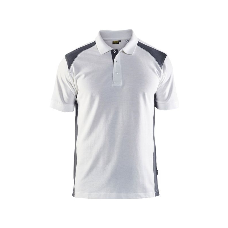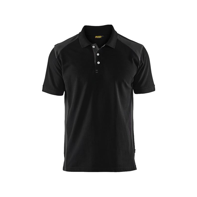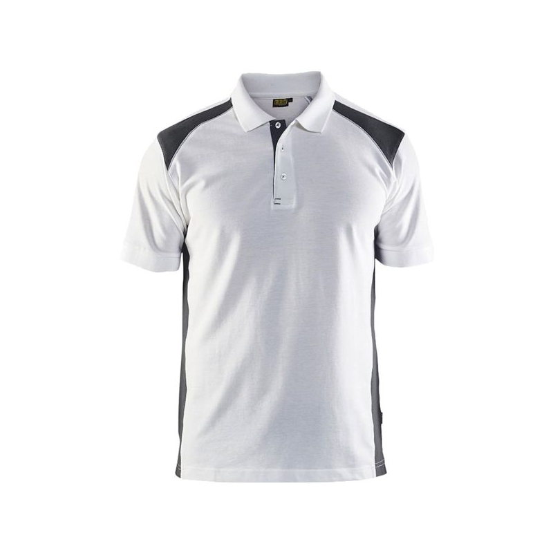 60% coton 40% polyester piqué, 220 g/m². Col en maille côtelée avec ouverture par boutons. Aération latérale. Coutures des épaules et du col renforcées. Bord manche en maille côtelée. Coloris : blanc, blanc/gris foncé, rouge/noir, marine/noir, marine, marine/jaune fluo, marine/bleu roi, gris clair/rouge, gris clair, gris moyen/noir, noir/jaune fluo, noir, noir/rouge, noir/bleu roi, noir/gris clair, noir/gris moyen, noir/gris foncé Taille : XS à 4XL