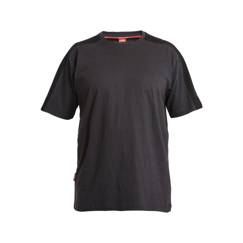 60% coton 40% polyester - Jersey, 180 g/m². Manches courtes. Col rond, bandes rétroréfléchissantes sur les épaules. Entretien : lavage ménager Coloris : bleu/noir, bleu marine/bleu roy, gris/noir, gris/rouge, kaki/noir, noir/gris, marron/gris, rouge/gris, vert/noir Taille : XS à 4XL