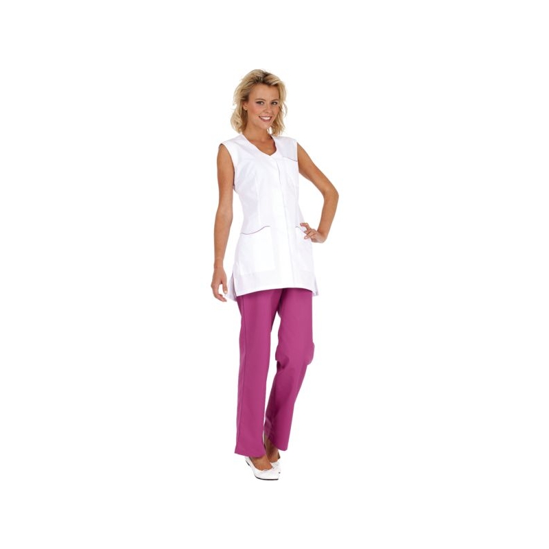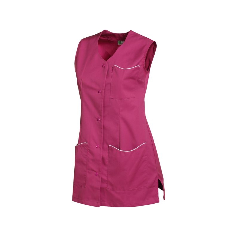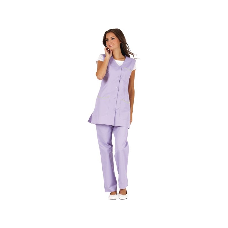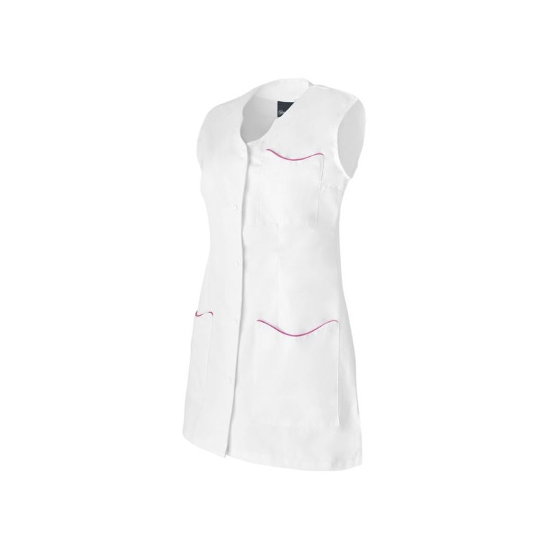 65% polyester 35% coton, 210 g/m². Sans col, fentes côtés, fermeture centrale par 5 pressions. 1 poche poitrine, 2 poches basses plaquées. Longueur : 80 cm Coloris : blanc, gris perle, parme, rose, vert anis Taille : 0 à 6 Norme : CE Cat II - EN 15797